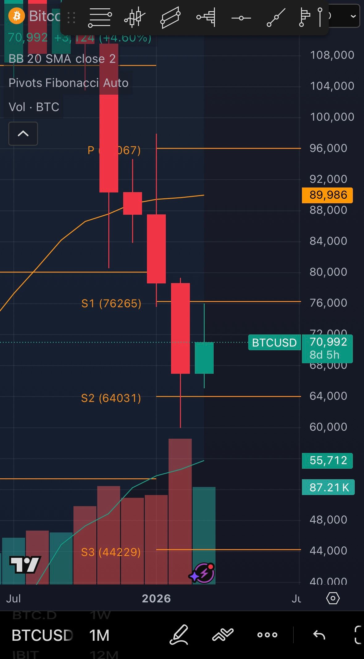 It’s pretty much the same story for the Monthly in terms of needing to close ABOVE $70.3K to remain somewhat BULLISH. However there’s much less historical precedent for a RETEST of the Monthly SMA over the Weekly here. Meaning it’s very likely that the price CANNOT rise HIGHER than $90K now. This will persist until that Monthly SMA starts to drop - which will take months.
