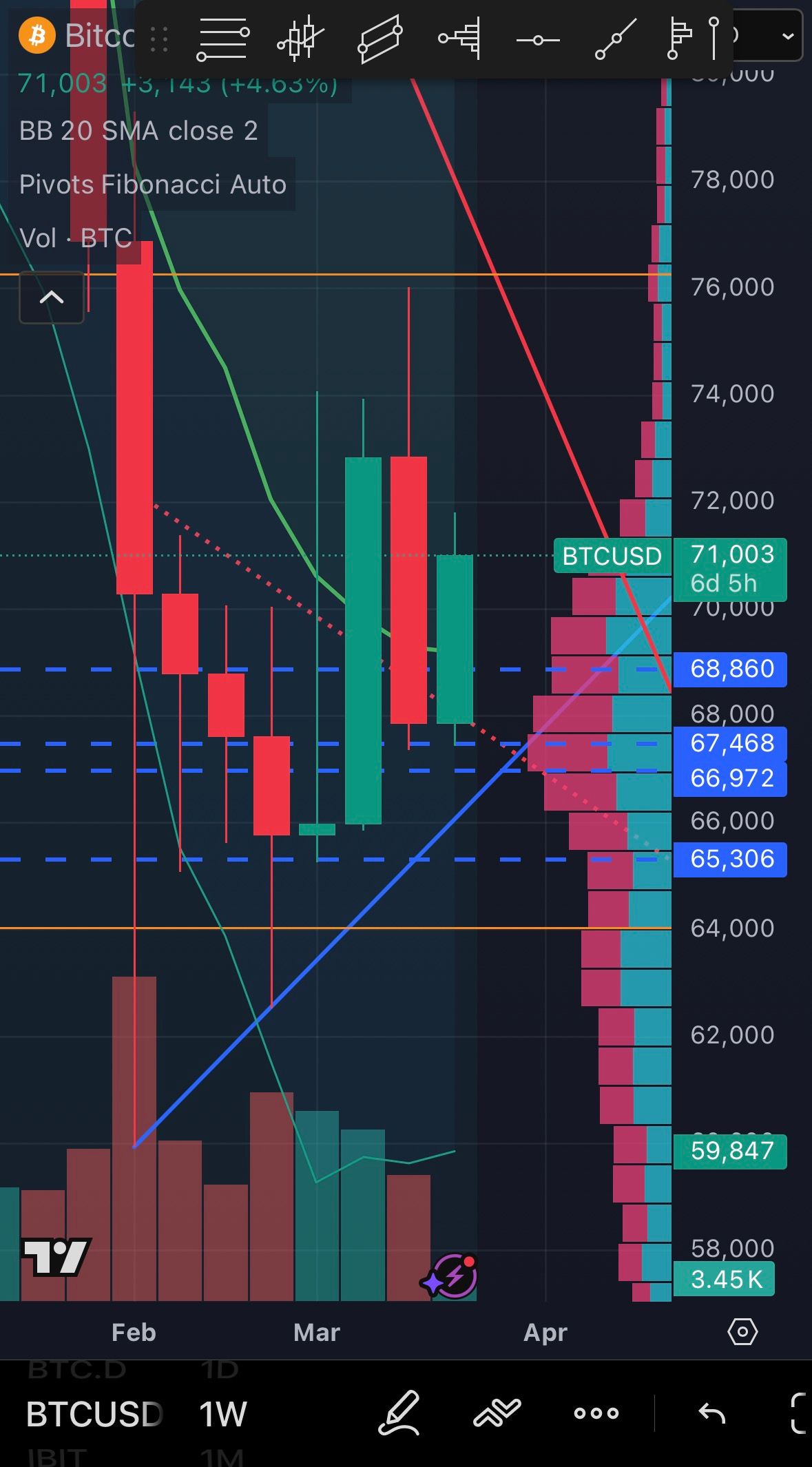 It does look more and more like we’re going to FAIL closer to $80K than $86K before liquidity starts to run dry but it looks like we’ll know by the middle of April according to the trendlines. So between now and then we just have to pay attention to how close it comes to either trendline. This will give us what we need to know about the future price trajectory.